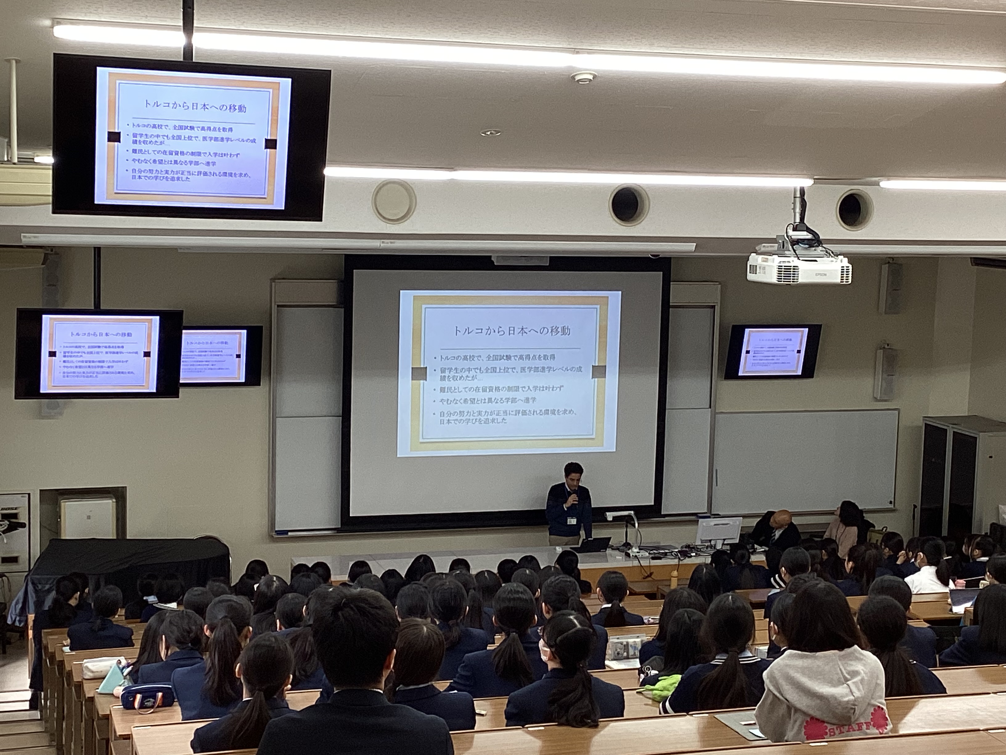 体験談など貴重なお話を聞いたあと、生徒たちからの質疑応答のときには、積極的に手をあげて疑問点を聞いている姿がありました。自分の夢と重ねて聞く姿や、勉強方法や言語についての考えを深める姿がありました。自分の夢に向けてあきらめずに努力し続けることの大切さも実体験を通してエールをいただきました。