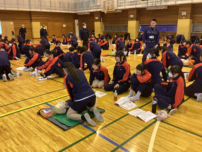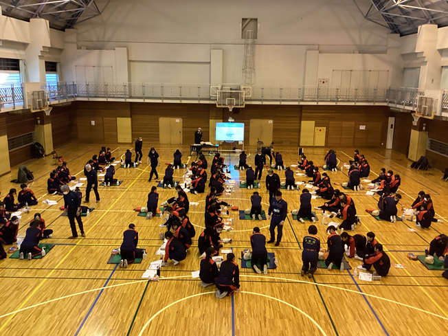 先日、麹町消防署、東京防災救急協会の方に来ていただき、高1学年で普通救命講習を受講しました。