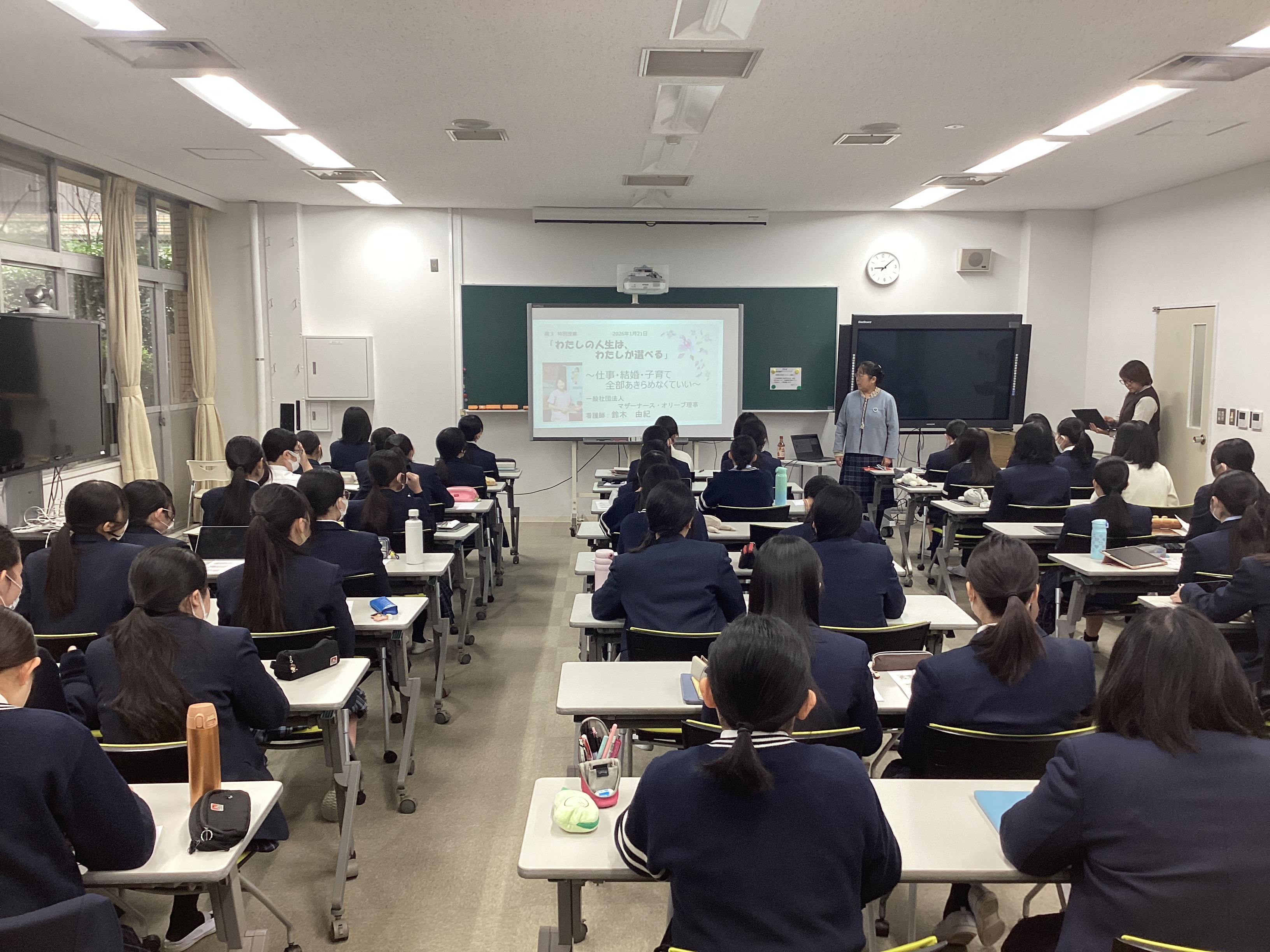 『わたしの人生は、わたしが選べる』という題目で、仕事・結婚・子育てについてお話しして頂きました。ワークライフバランスの大切さや、子供の可愛らしさ、良い仕事をしたときの達成感など、これから歩んでいく人生でとてもためになる内容でした。