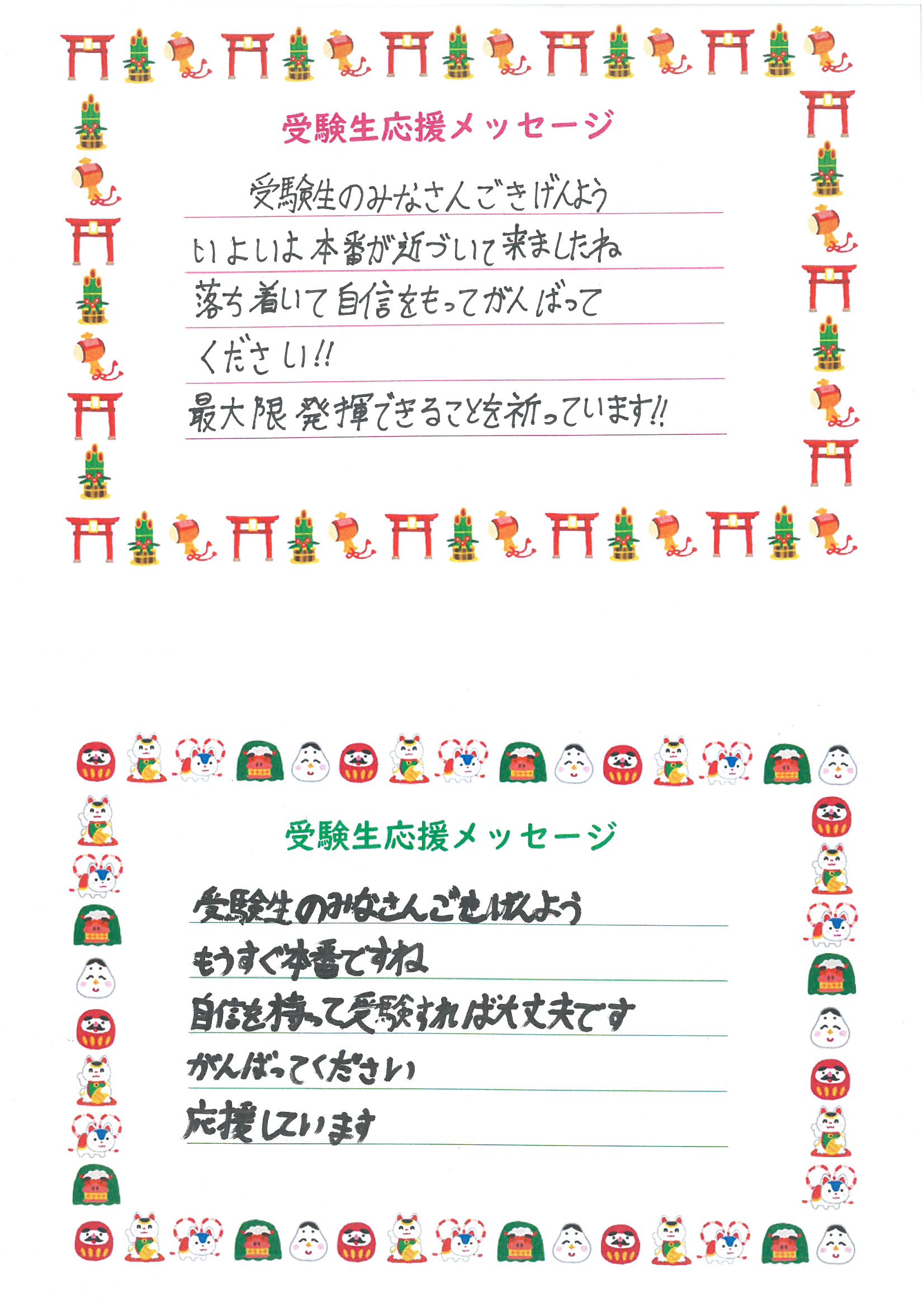☆~☆~☆中学受験生のみなさんへ♪応援メッセージ⑤☆~☆~☆