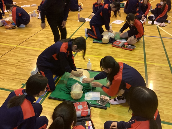 先日、麹町消防署、東京防災救急協会の方に来ていただき、高1学年で普通救命講習を受講しました。